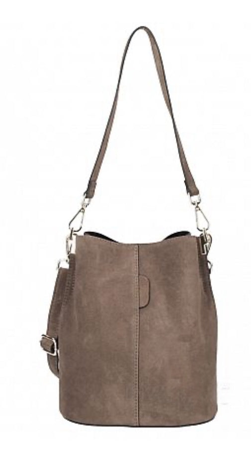Three compartments, inside pocket, gold accessories, leather detachable strap.