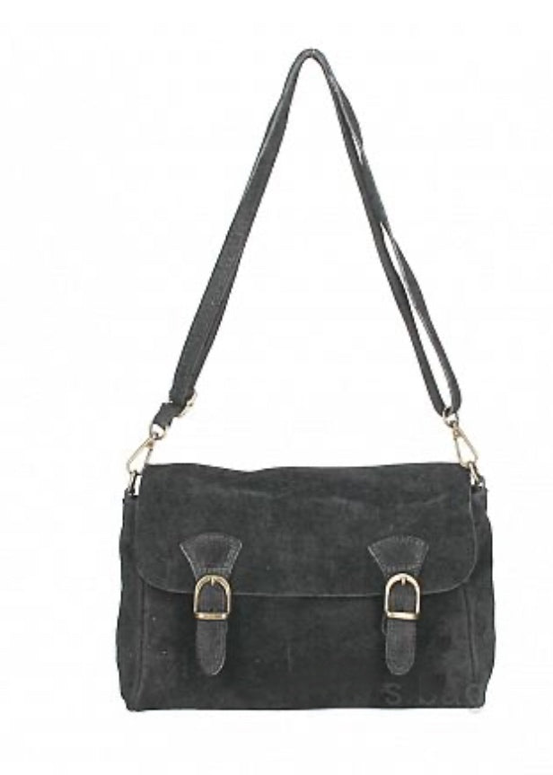 MIA, a suede messenger bag small enough to be super cute but big enough to hold your essentials, it has a flap closure, inside pocket with zip, back pocket, single compartment inside, fully adjustable shoulder strap.