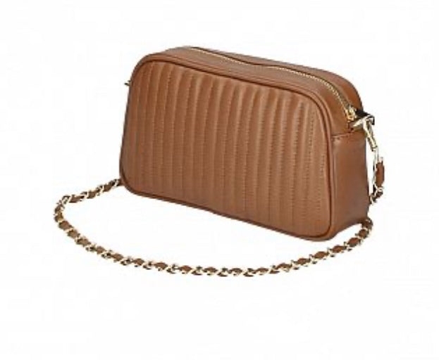 New for autumn 2025 - genuine soft leather handbag with chain shoulder strap, zip closure, gold accessories, inside pocket.